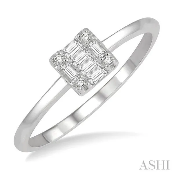 (319) 752-31961/8 Ctw Square Shape Baguette and Round Cut Diamond Petite Fashion Ring in 10K White Gold