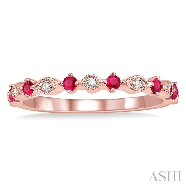 1.8 MM Round Cut Ruby and 1/20 Ctw Round Cut Diamond Precious Half Eternity Wedding Band in 14K Rose Gold Image 2 Becker's Jewelers Burlington, IA