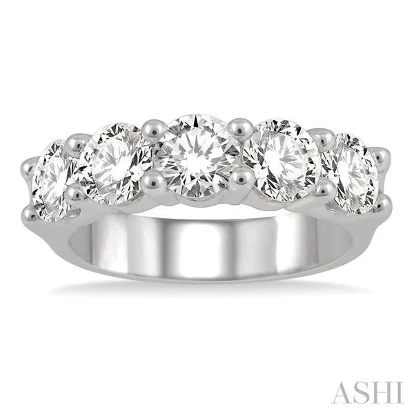 3. 2 1/2 Ctw 5 Stone Round Cut Diamond Wedding Band in 14K White Gold