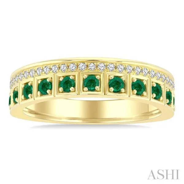 (319) 752-31962 MM Round Shape Emerald and 1/6 Ctw Round Cut Diamond Precious Fashion Band in 10K Yellow Gold