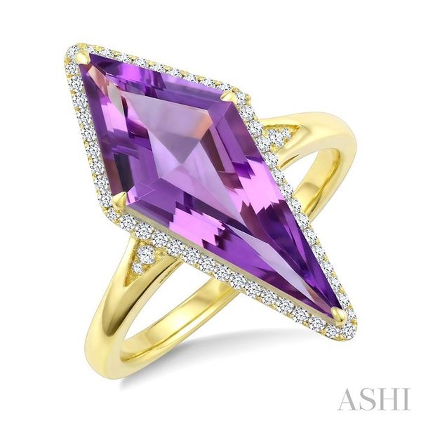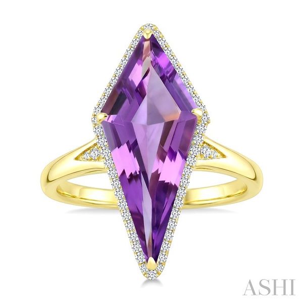 22X9 MM Kite Shape Amethyst and 1/5 Ctw Round Cut Diamond Semi-Precious Ring in 14K Yellow Gold Image 2 Becker's Jewelers Burlington, IA