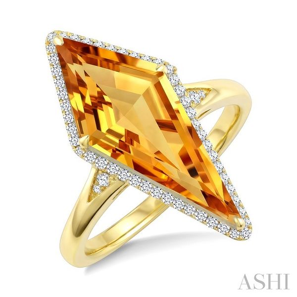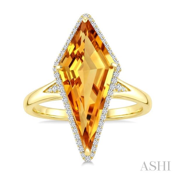 22X9 MM Kite Shape Citrine and 1/5 Ctw Round Cut Diamond Semi-Precious Ring in 14K Yellow Gold Image 2 Becker's Jewelers Burlington, IA