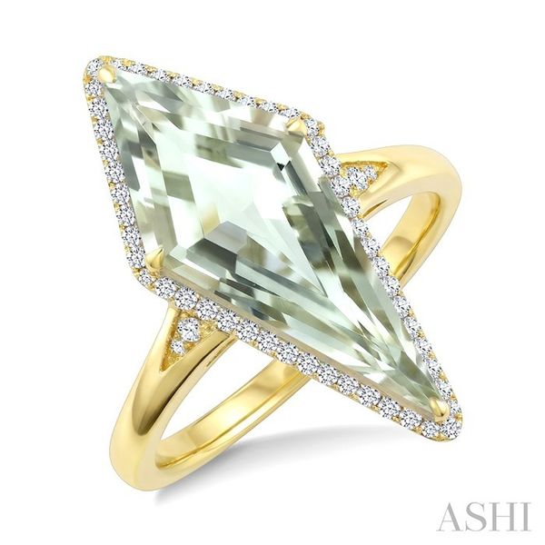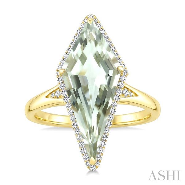 22X9 MM Kite Shape Green Amethyst and 1/5 Ctw Round Cut Diamond Semi-Precious Ring in 14K Yellow Gold Image 2 Becker's Jewelers Burlington, IA