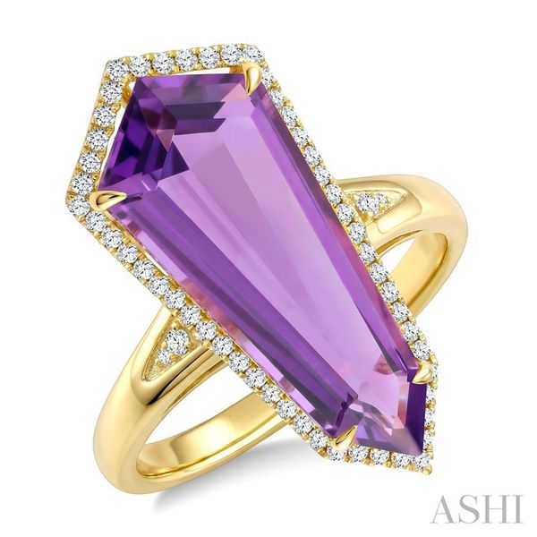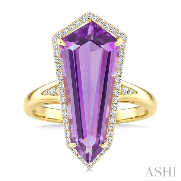 22X9 MM Shield Shape Amethyst and 1/4 Ctw Round Cut Diamond Semi-Precious Ring in 14K Yellow Gold Image 2 Becker's Jewelers Burlington, IA