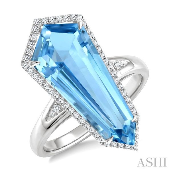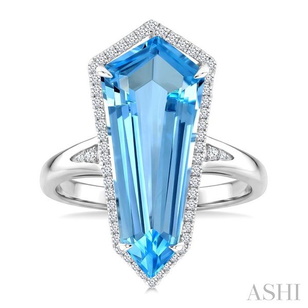 22X9 MM Shield Shape Blue Topaz and 1/4 Ctw Round Cut Diamond Semi-Precious Ring in 14K White Gold Image 2 Becker's Jewelers Burlington, IA