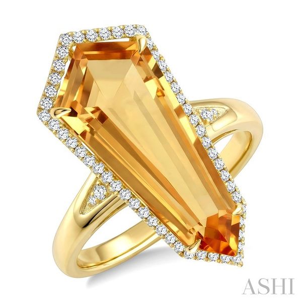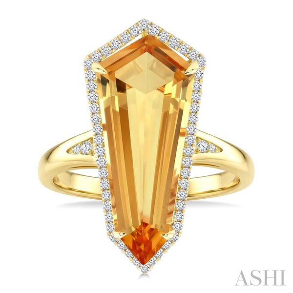 22X9 MM Shield Shape Citrine and 1/4 Ctw Round Cut Diamond Semi-Precious Ring in 14K Yellow Gold Image 2 Becker's Jewelers Burlington, IA