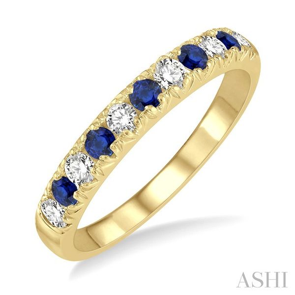 2.3 MM Round Shape Sapphire and 1/4 Ctw Round Cut Diamond Precious Wedding Band in 14K Yellow Gold Image 2 Becker's Jewelers Burlington, IA