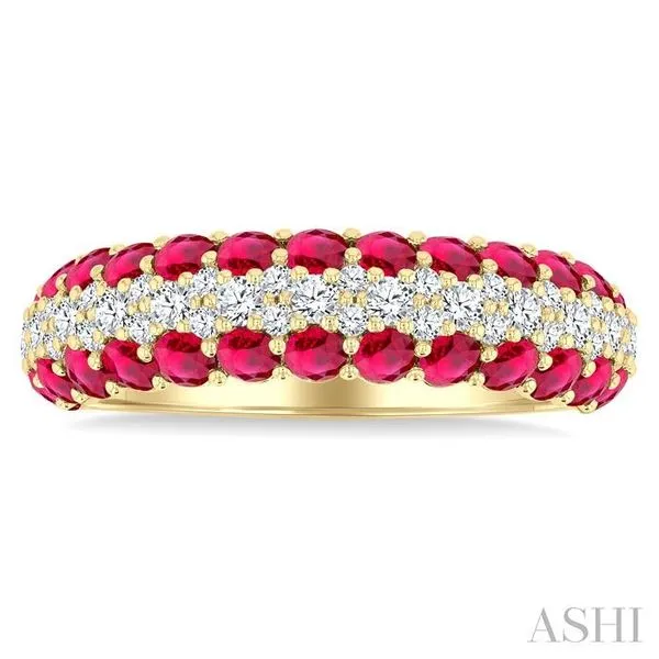 (319) 752-31962.4 MM Center Border Round Shape Ruby and 1/2 Ctw Round Cut Diamond Precious Band in 14K Yellow Gold
