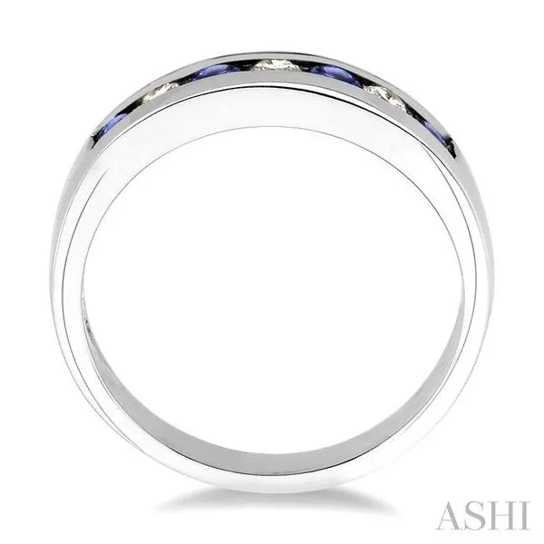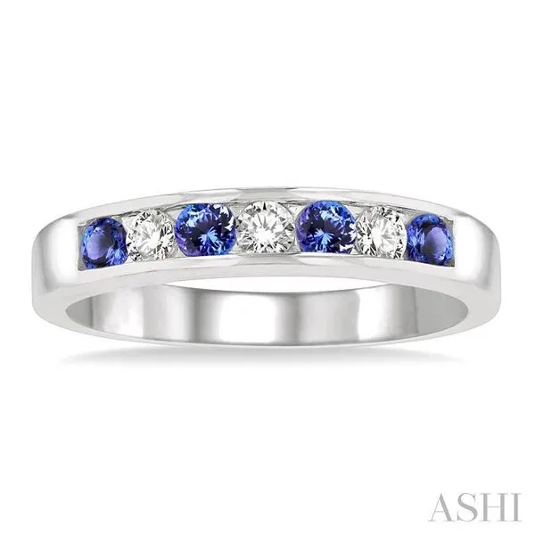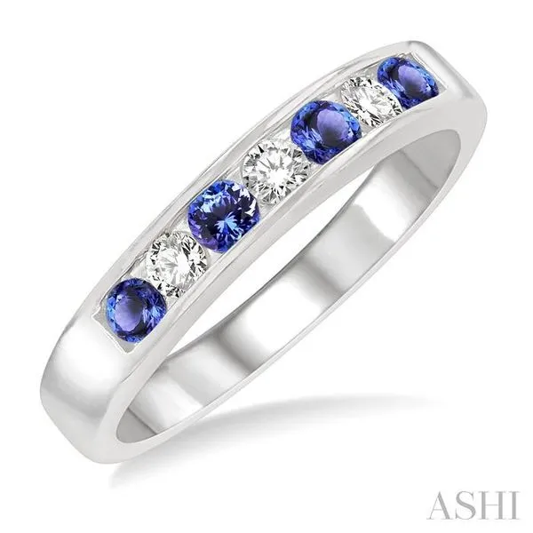 (319) 752-31962.5 MM Round Cut Tanzanite and 1/5 Ctw Channel Set Round Cut Diamond Band in 14K White Gold
