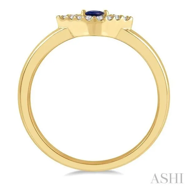 (319) 752-31962.60 MM Round Shape Sapphire and 1/10 Ctw Evil Eye Petite Round Cut Diamond Precious Ring in 10K Yellow Gold