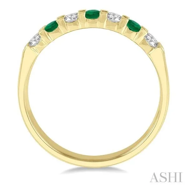 (319) 752-31963 MM Emerald and 3/8 Ctw Round Cut Diamond Precious Wedding Band in 14K Yellow Gold