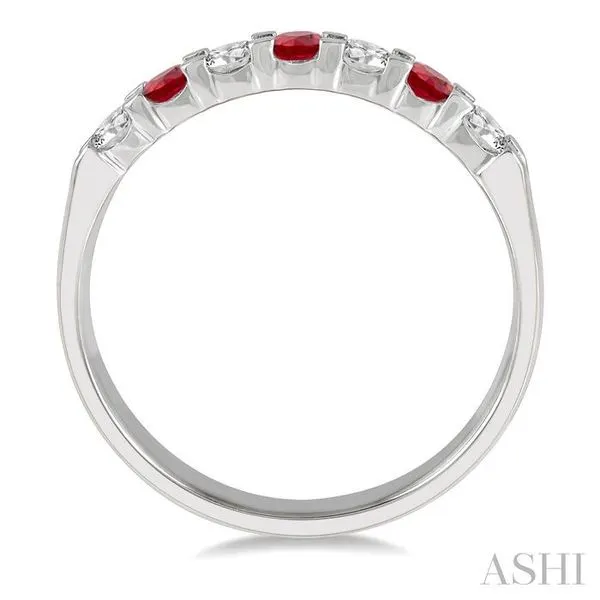 (319) 752-31963 MM Ruby and 3/8 Ctw Round Cut Diamond Precious Wedding Band in 14K White Gold
