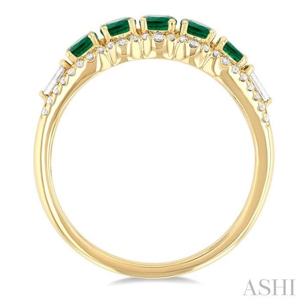 3.1 MM Round Emerald and 1/4 Ctw Baguette and Round Cut Diamond 5-Stone Precious Ring in 14K Yellow Gold Image 3 Becker's Jewelers Burlington, IA