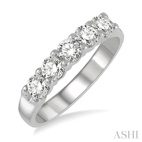 3. 3/4 Ctw 5 Stone Round Cut Diamond Wedding Band in 14K White Gold