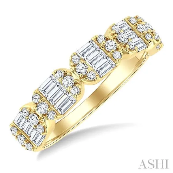 3. 3/4 Ctw Baguette and Round Cut Diamond Fashion Band in 14K Yellow Gold
