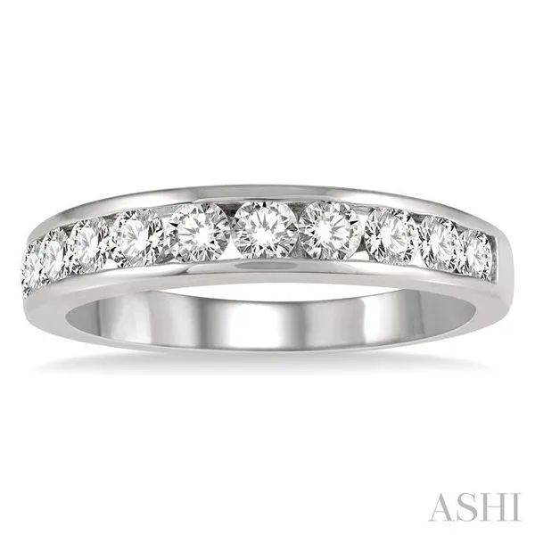 (319) 752-31963/4 Ctw Channel Set 11 Stone Round Cut Diamond Wedding Band in 14K White Gold