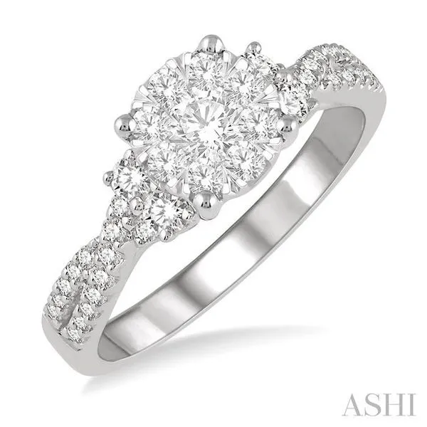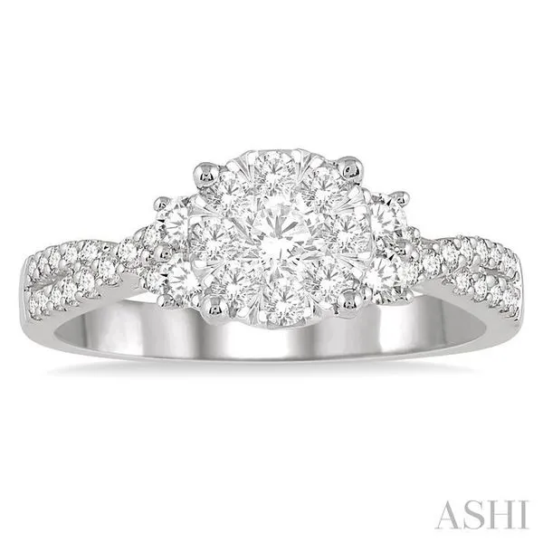(319) 752-31963/4 Ctw Crossed Split Shank Lovebright Diamond Cluster Ring in 14K White Gold
