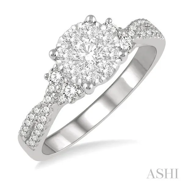 (319) 752-31963/4 Ctw Crossed Split Shank Lovebright Diamond Cluster Ring in 14K White Gold