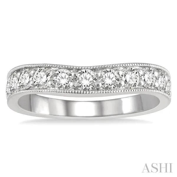 (319) 752-31963/4 Ctw Curved Center Milgrain Border Round Cut Diamond Wedding Band in 14K White Gold
