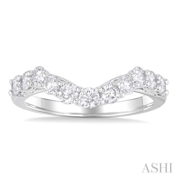 3/4 Ctw Curved Round Cut Diamond Wedding Band in 14K White Gold Image 3 Becker's Jewelers Burlington, IA