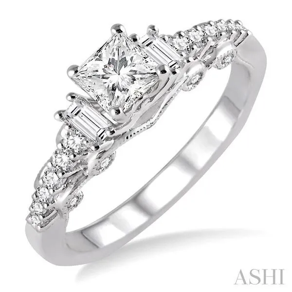 (319) 752-31963/4 Ctw Diamond Engagement Ring with 3/8 Ct Princess Cut Center Stone in 14K White Gold