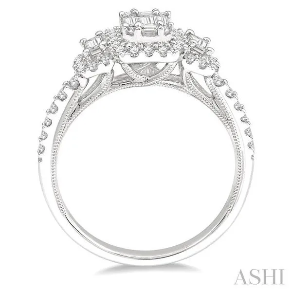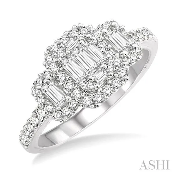 (319) 752-31963/4 Ctw Layered Round Cut and Baguette Diamond Ring in 14K White Gold