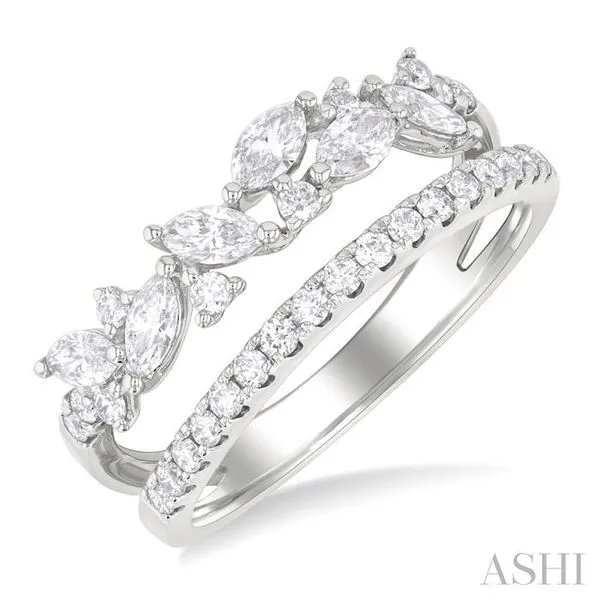(319) 752-31963/4 Ctw Marquise and Round Cut Diamond Split Twin Row Fashion Ring in 14K White Gold
