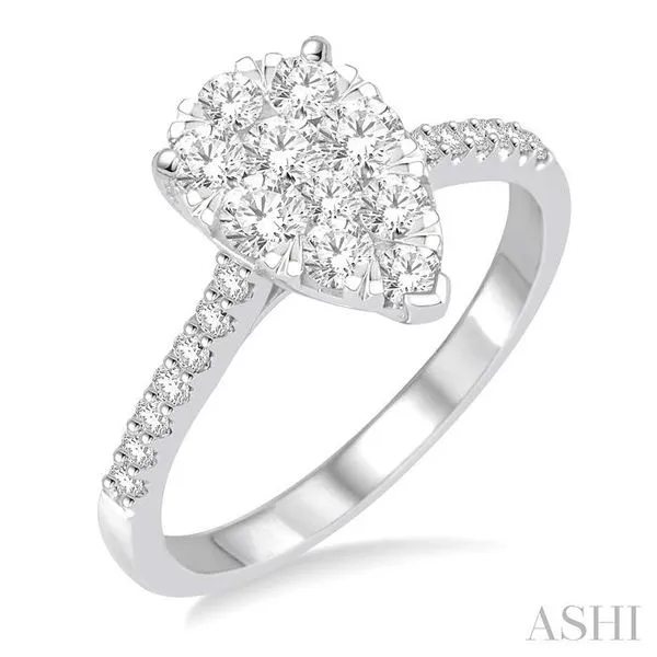 (319) 752-31963/4 Ctw Pear Shape Diamond Lovebright Ring in 14K White Gold
