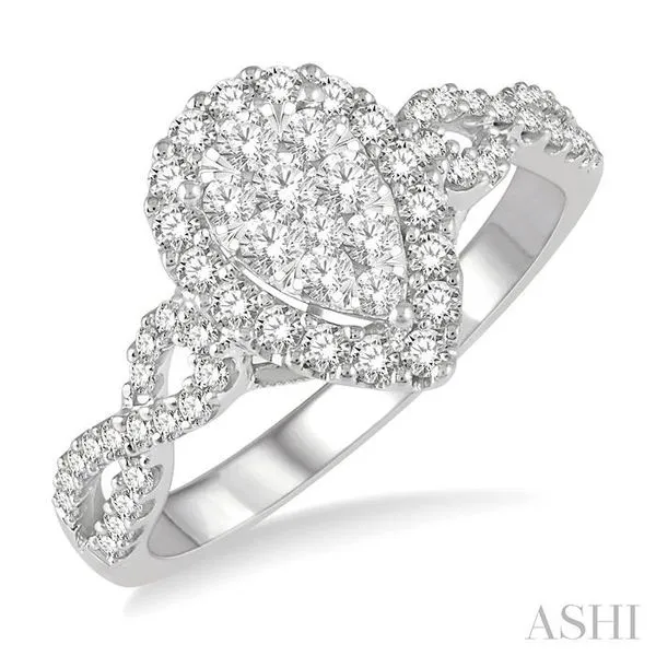 3/4 Ctw Pear Shape Diamond Lovebright Ring in 14K White Gold
