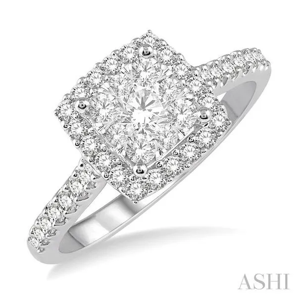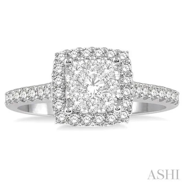 (319) 752-31963/4 Ctw Round Diamond Lovebright Halo Engagement Ring in 14K White and Yellow Gold