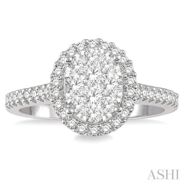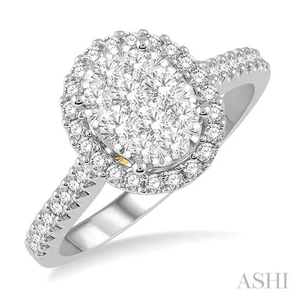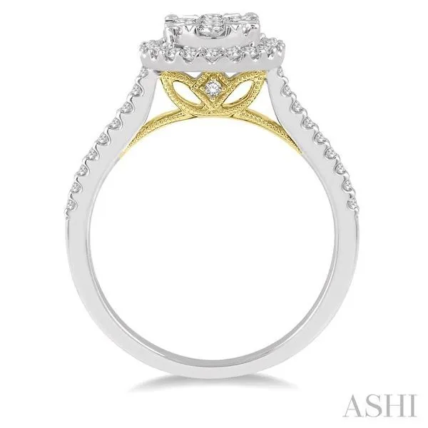 (319) 752-31963/4 Ctw Round Diamond Lovebright Oval Shape Halo Engagement Ring in 14K White and Yellow Gold