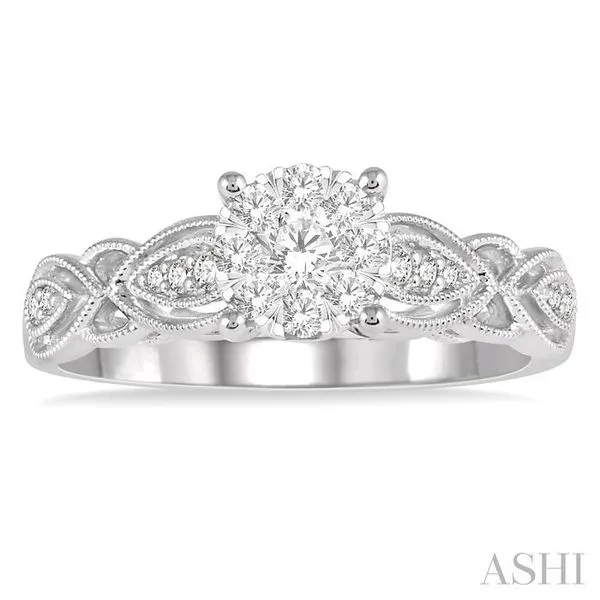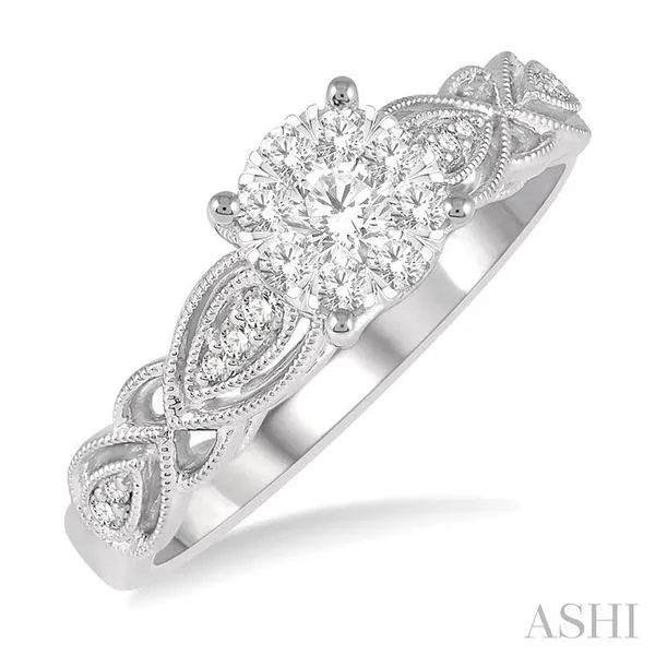 (319) 752-31963/8 Ctw Circular Mount Marquise Lattice Lovebright Round Cut Diamond Ring in 14K White Gold