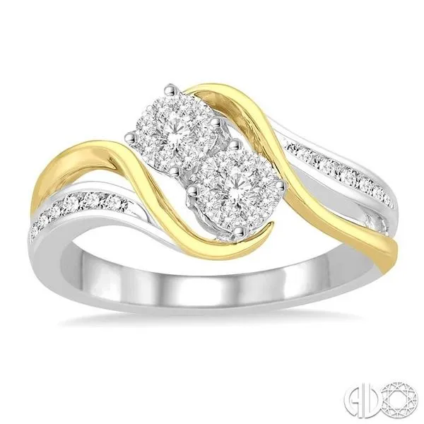 3/8 Ctw Curved Yellow Gold Arms Round Cut Diamond Lovebright 2Stone Ring in 14K White and Yellow Gold Image 2 Becker's Jewelers Burlington, IA