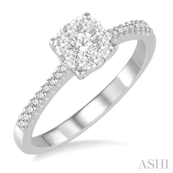 (319) 752-31963/8 Ctw Round Shape Diamond Lovebright Ring in 14K White Gold