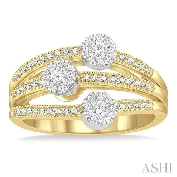 (319) 752-31963/8 Ctw Split Top Tri Mount Lovebright Round Cut Diamond Ring in 14K Yellow Gold