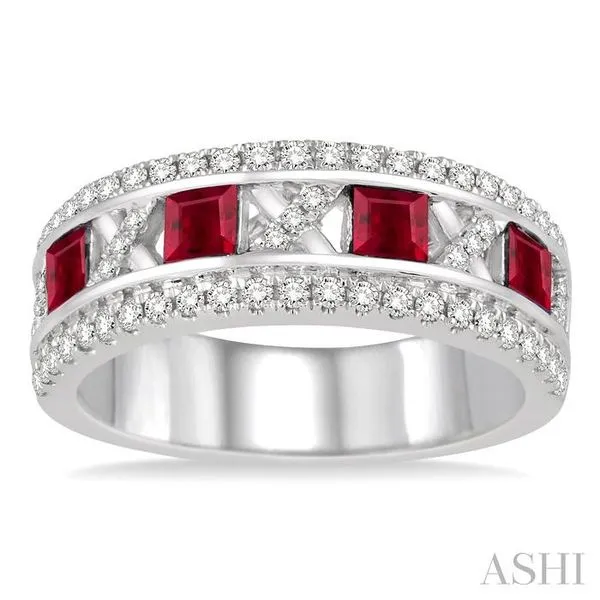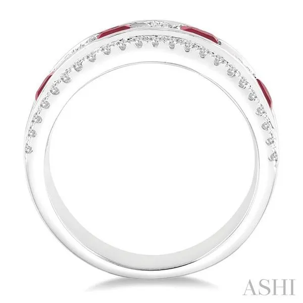 (319) 752-31963x3 MM Princess Cut Ruby and 3/8 Ctw Round Cut Diamond Precious Band in 14K White Gold