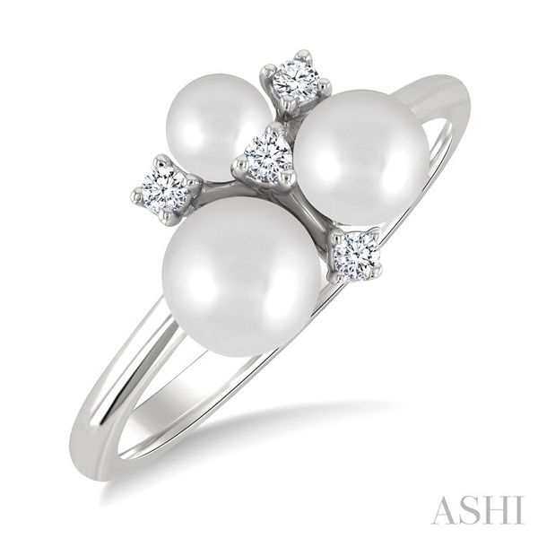 4 MM, 5MM & 6MM Cultured Pearl and 1/10 Ctw Round Cut Diamond Fashion Ring in 10K White Gold