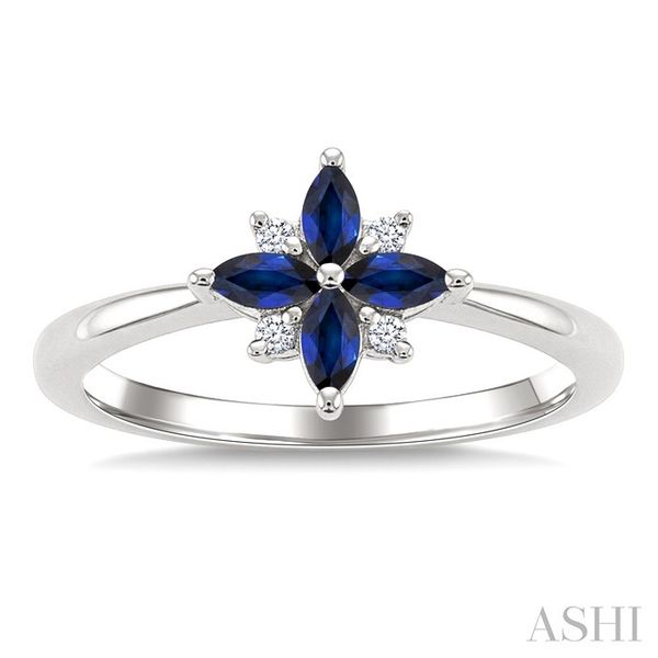 4X2 MM Marquise Shape Sapphire and 1/20 Ctw Round Cut Diamond Blossom Ring in 10K White Gold Image 2 Becker's Jewelers Burlington, IA