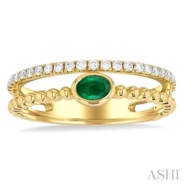 (319) 752-31964x3 MM Oval Shape Emerald and 1/5 Ctw Single Cut Diamonds Precious Fashion Split Twin Ring in 10K Yellow Gold