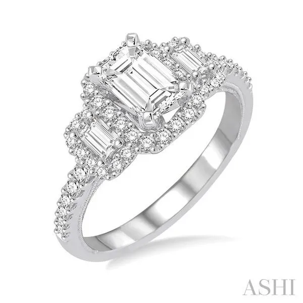 (319) 752-31965/8 Ctw Diamond Ladies Engagement Ring with 1/4 Ct Emerald Cut Center Stone in 14K White Gold