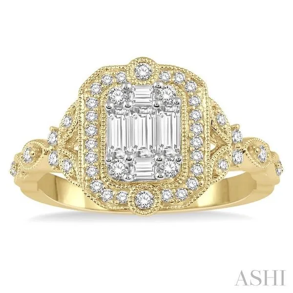 (319) 752-31965/8 Ctw Intricate lattice Baguette and Round Cut Diamond Ring in 14K Yellow and white gold