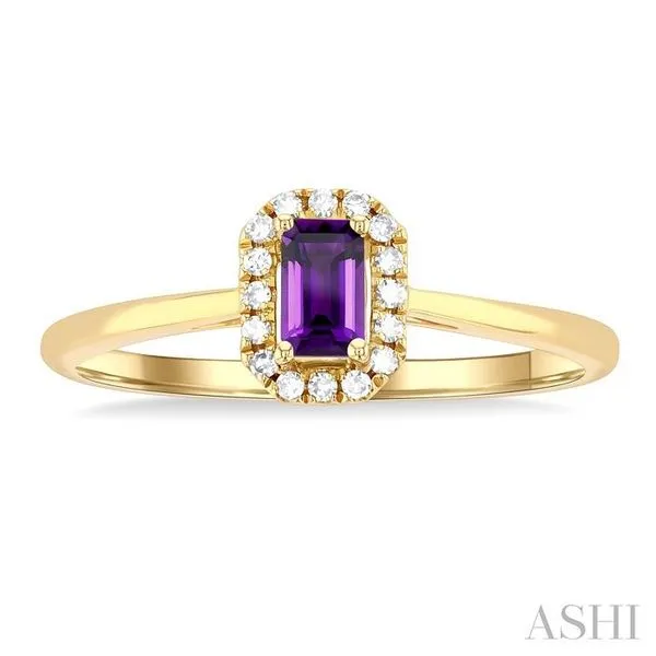 (319) 752-31965x3 MM Octagonal Shape Amethyst and 1/20 Ctw Single Cut Diamond Halo Semi-Precious Ring in 14K Yellow Gold
