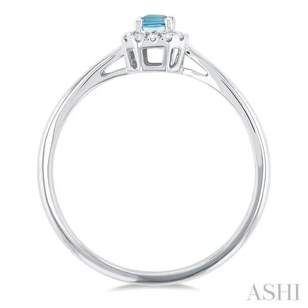 (319) 752-31965x3 MM Octagonal Shape Aquamarine and 1/20 Ctw Single Cut Diamond Halo Semi-Precious Ring in 14K White Gold