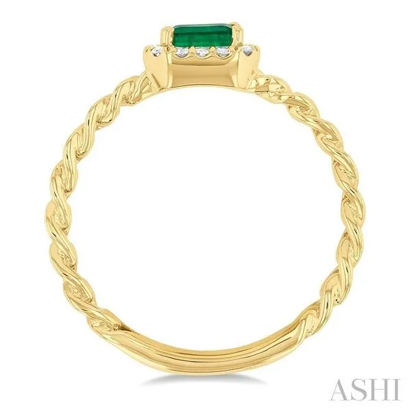 (319) 752-31965x3 MM Oval Cut Emerald and 1/10 Ctw Curb & Cuban Link East-West Round Cut Diamond Halo Precious Ring in 10K Yellow Gold
