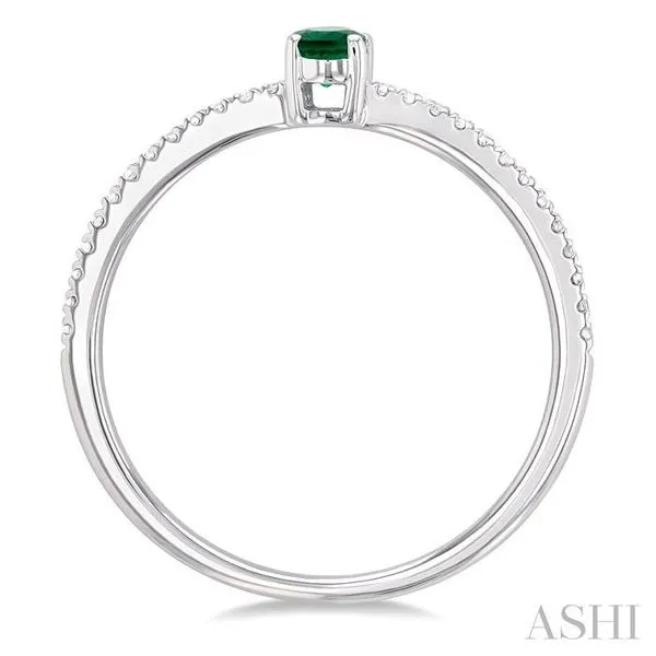 (319) 752-31965x3 MM Oval Cut Emerald and 1/10 Ctw Petite Round Cut Diamond Precious Fashion Ring in 10K White Gold