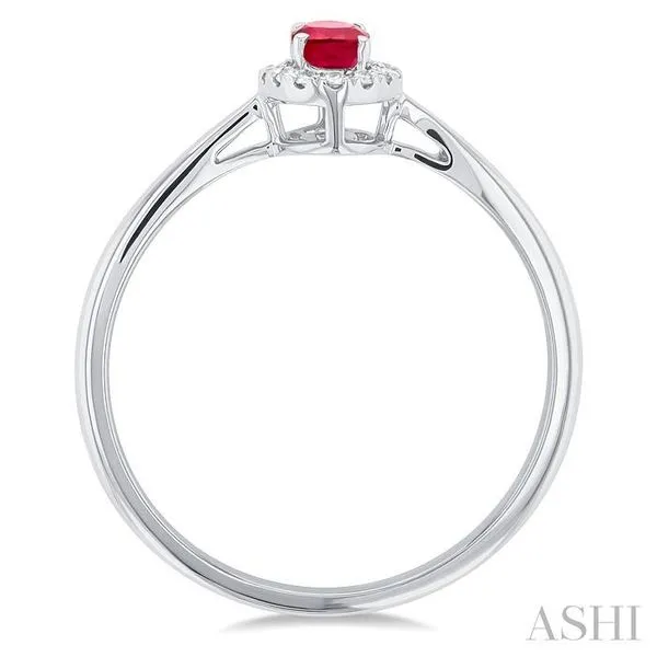 (319) 752-31965x3 MM Oval Shape Ruby and 1/20 Ctw Single Cut Diamond Halo Precious Ring in 10K White Gold