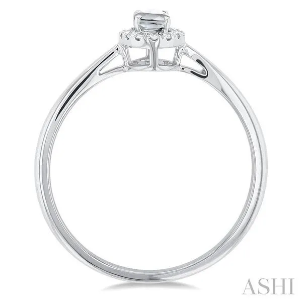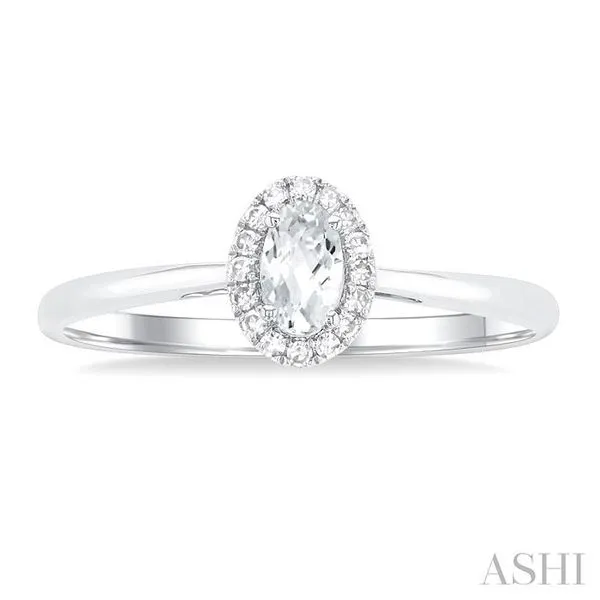 (319) 752-31965x3 MM Oval Shape White Topaz and 1/20 Ctw Single Cut Diamond Halo Semi-Precious Ring in 10K White Gold