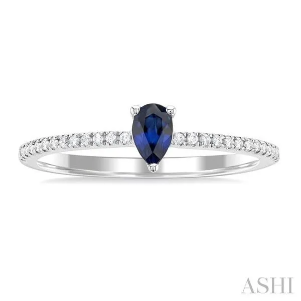 (319) 752-31965x3 MM Pear Cut Sapphire and 1/10 Ctw Petite Round Cut Diamond Precious Fashion Ring in 10K White Gold