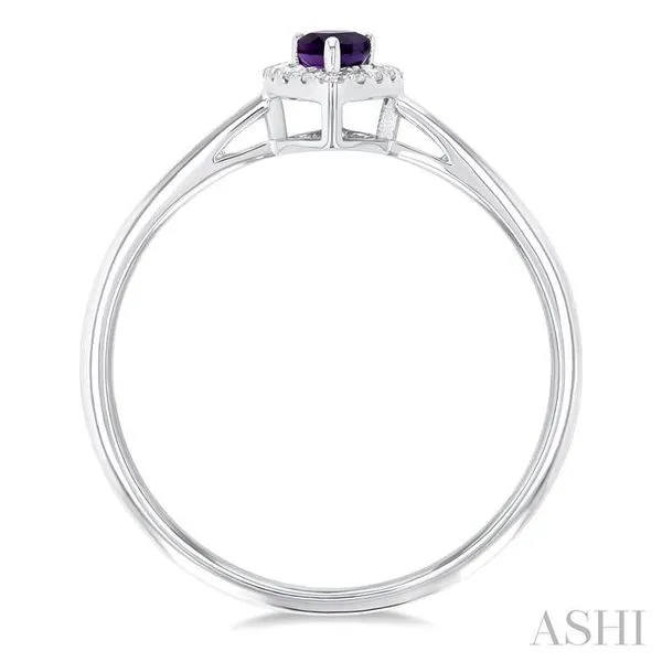 (319) 752-31965x3 MM Pear Shape Amethyst and 1/20 Ctw Single Cut Diamond Halo Semi-Precious Ring in 14K White Gold