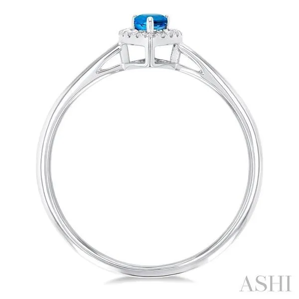 (319) 752-31965x3 MM Pear Shape Blue Topaz and 1/20 Ctw Single Cut Diamond Halo Semi-Precious Ring in 14K White Gold
